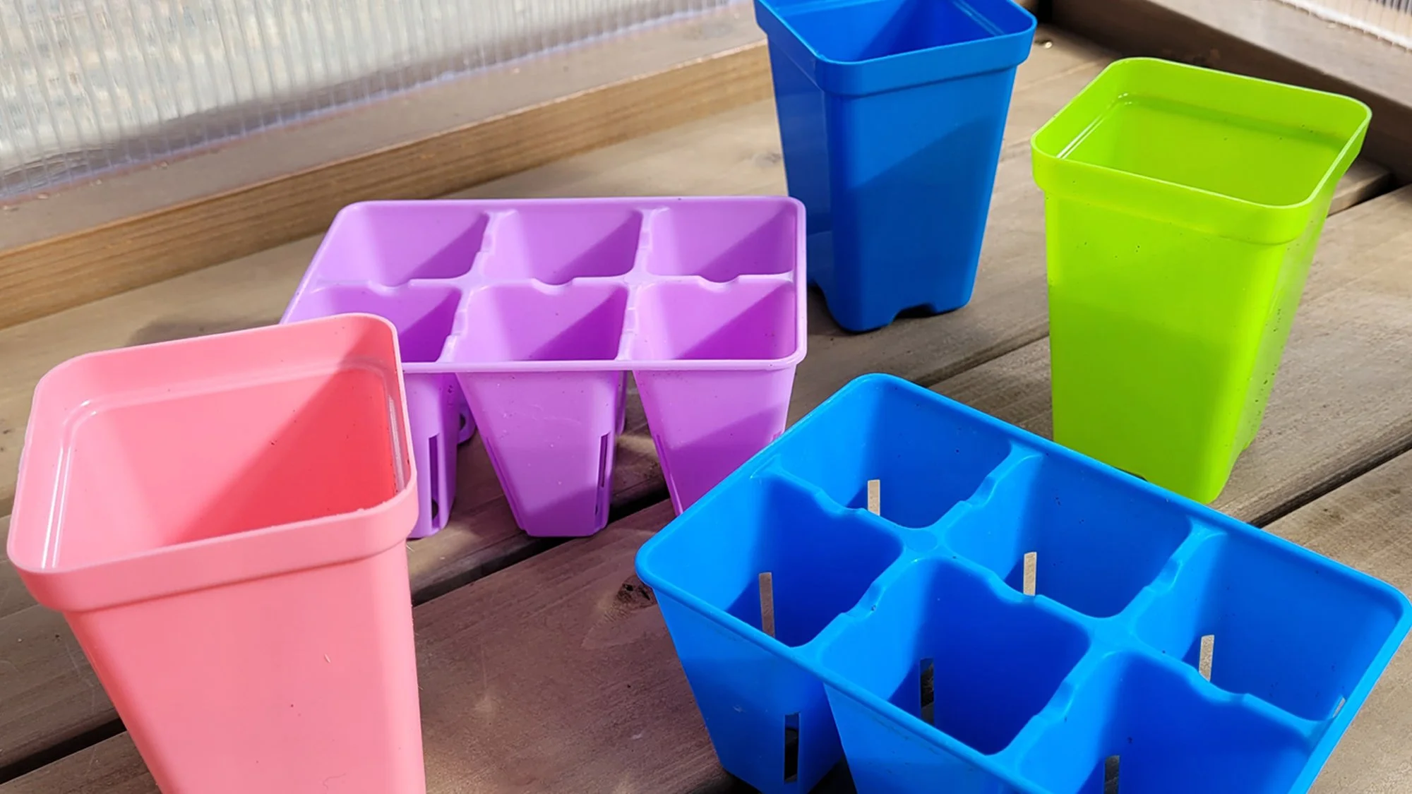 Colorful 6-cell inserts, 1020 tray with holes, and 1020 tray without holes from Bootstrap Farmer.